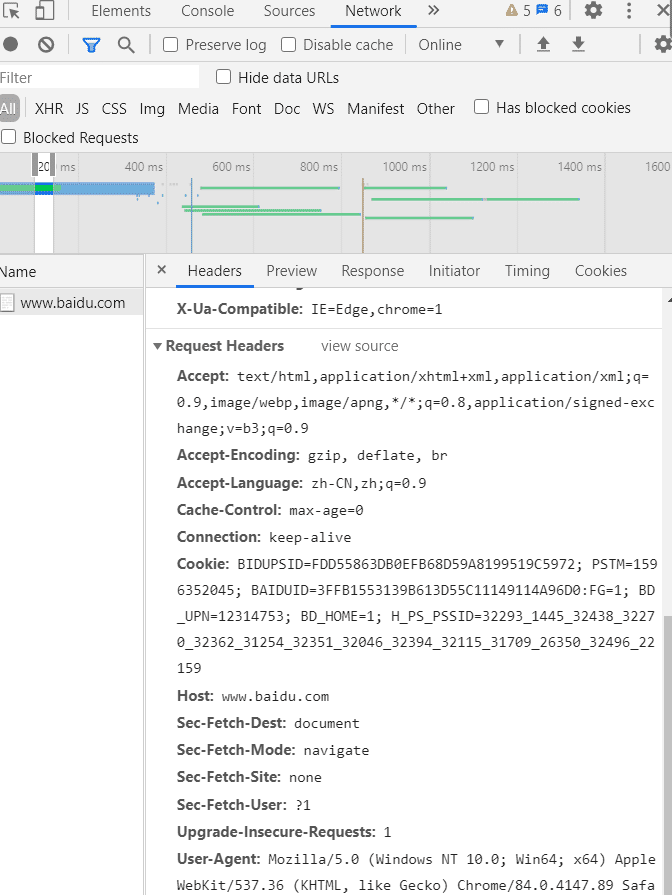 Referer :此内容用来标识这个请求是从哪个页面发过来的,服务器可以拿到这一信息并做相应的处理,如做来源统计、防盗链处理等 。