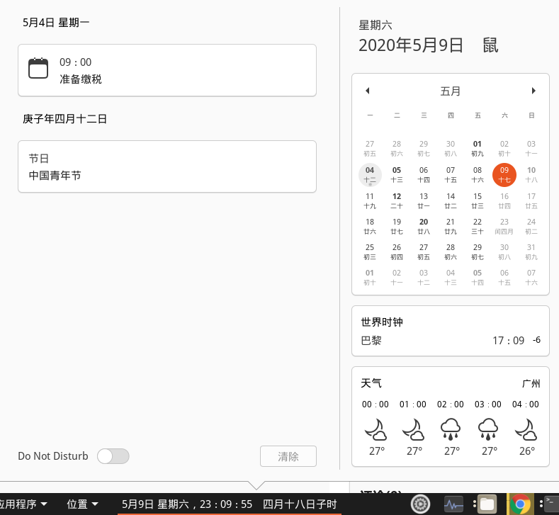 找到一个gnome-shell农历扩展,Lunar Calendar 农历。直接安装会出现错误,因为缺失依赖。作者让我手动编译安装lunar-date。