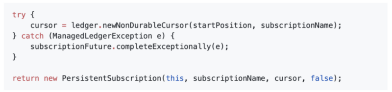 此 PR 就是在创建非持久性 cursor 失败的时候,返回一个 failedFuture 对象,而不是去创建一个 subscription instance。