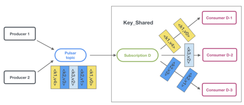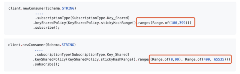 Key_Shared 订阅模式可以保证用户在订阅到某个 topic 时,可以指定 producer message key。消息会根据指定 key 的不同,通过 hash range 有序发送到不同的 consumer。