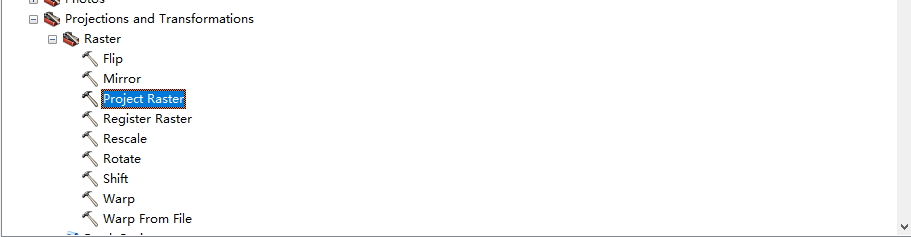 第一步:找到自己需要的工具,比如我需要栅格投影转换,右键选择Project Raster,会出现Batch(批处理),