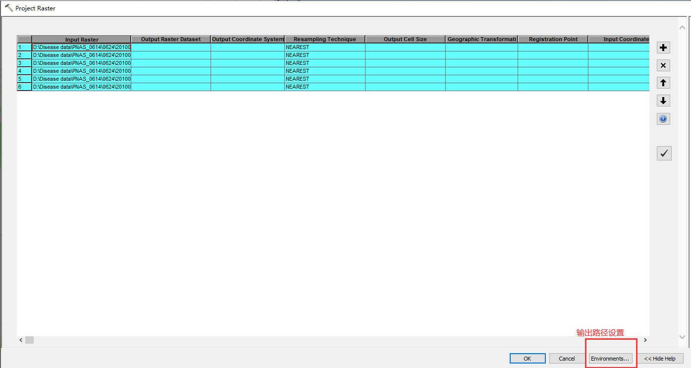 第三步:选择批量数据的输出路径(每个文件名不同,但又有规律),我看到网上很多朋友是用EXCLE来做好输出路径然后复制进来,其实只需选择右下角Environment settings---Workspace进行路径设置即可。