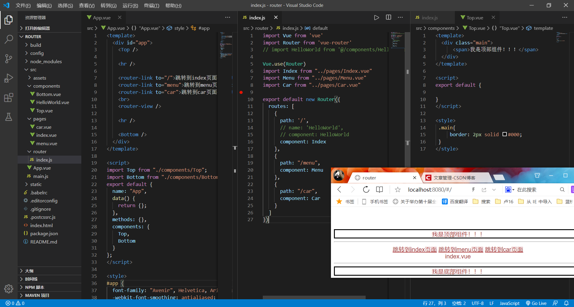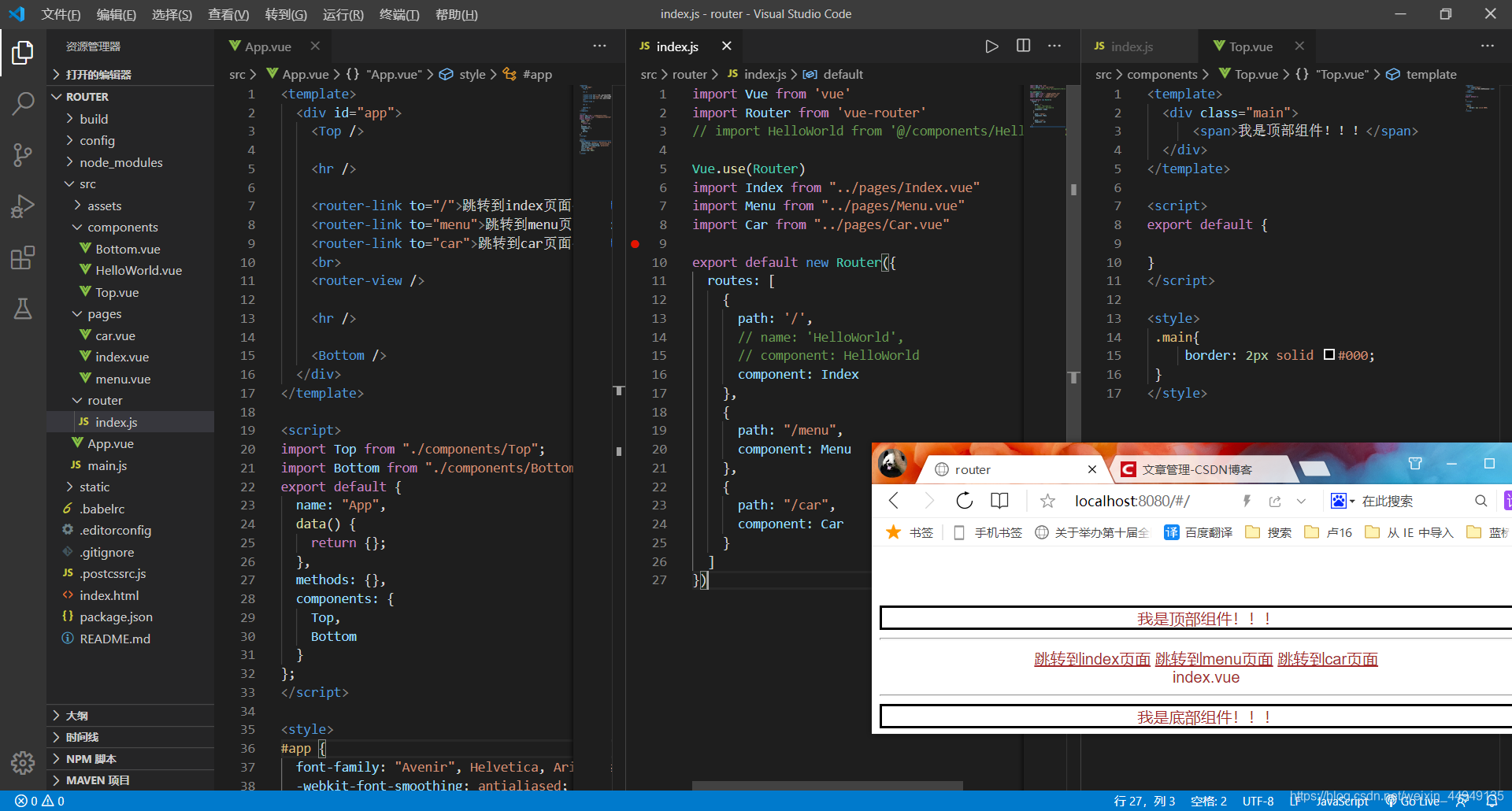 第5步: 地址栏输入 /就可以展示Index组件, 输入/menu 就可以展示Menu组件。