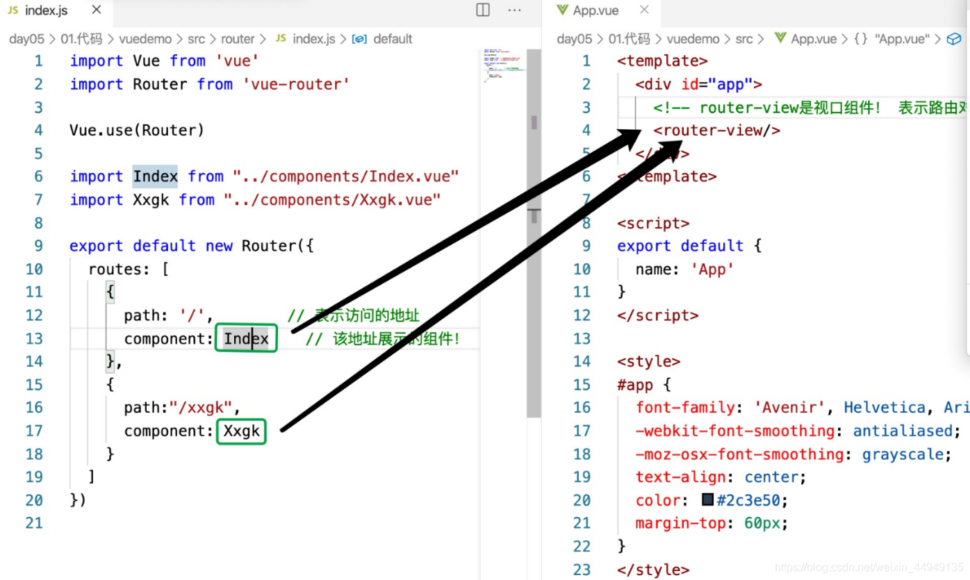 <!-- router-view是视口组件! 表示路由对应的地址的组件 展示输出的地方! -->