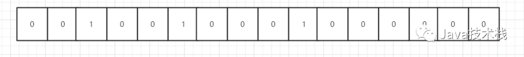 还是通过某种计算方式,比如Hash3,计算出了Hash3(数据)=2,我们就把下标为2的格子改成1,就像下面这样:
