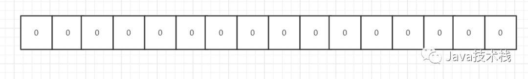 现在我们新建一个长度为16的布隆过滤器,默认值都是0,就像下面这样: