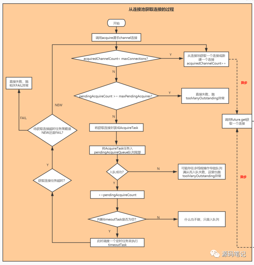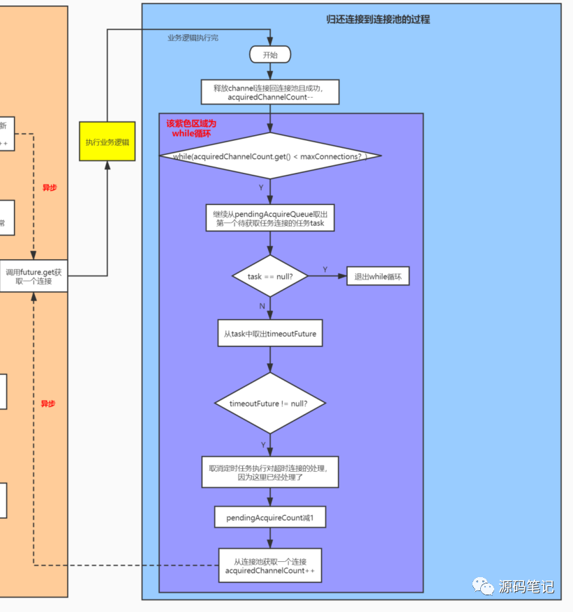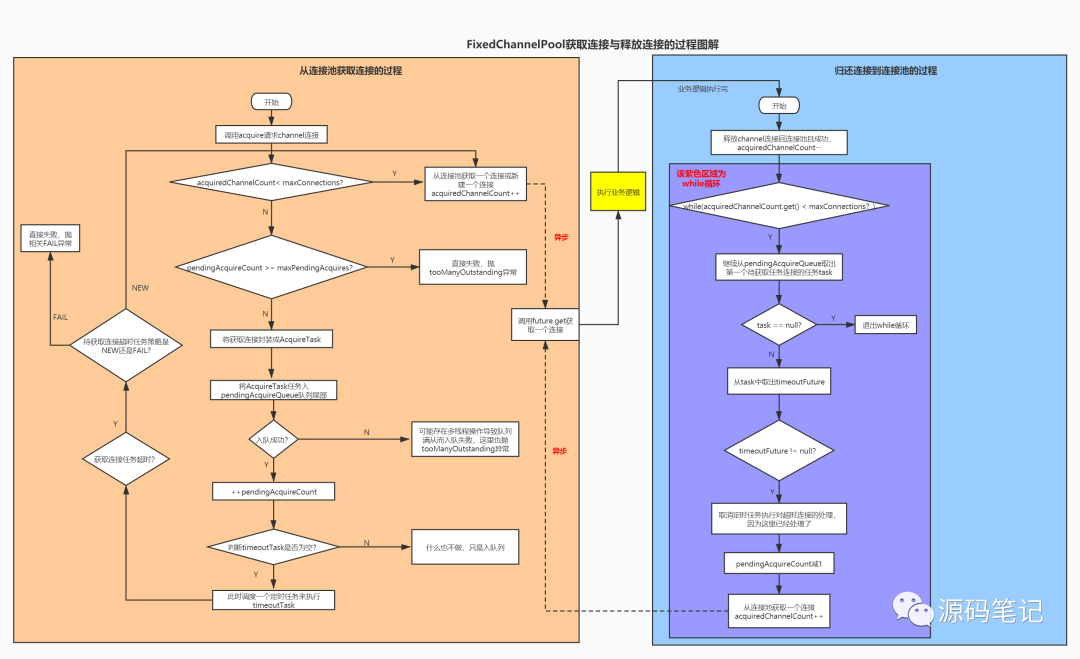 同样,以一个流程图来总结Netty连接池获取和释放连接流程:这里不再文字累赘总结,更详细的