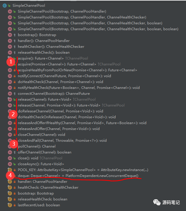 源码这里先补贴了,我们来看下SimpleChannelPool的类结构:首先