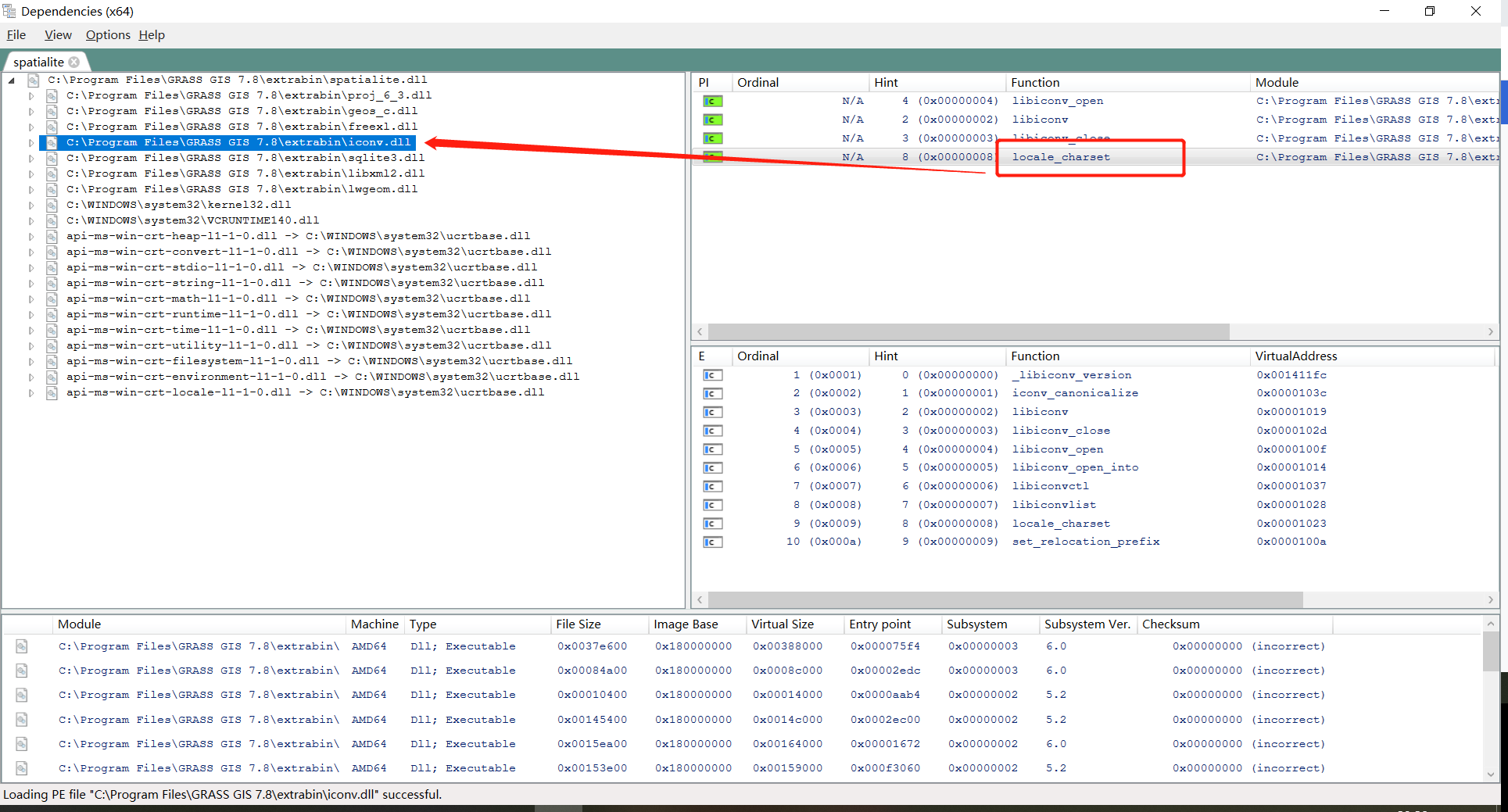 然后可以看到locale_charset这个变量,是需要由C:\Program Files\GRASS GIS 7.8\extrabin\iconv.dll这个dll提供的