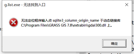 通过搜索了解到出现这个错误的主要原因是在GRASS运行时可能调用了错误的.dll动态链接库,网上给出的解决方法是: