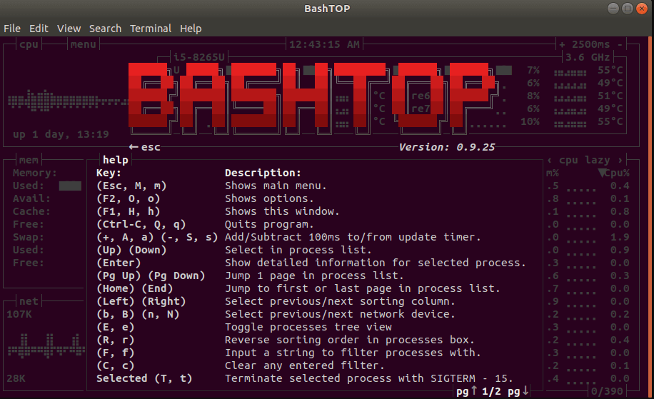 #在Debian中安装Bashtop Bashtop在Debian的官方存储库中可用。要安装它,只需运行以下命令: