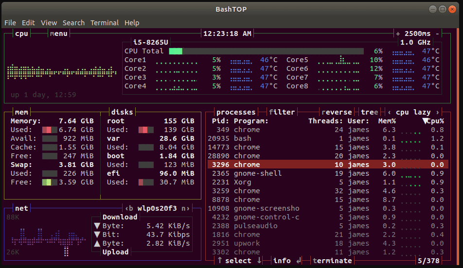 •Bash 4.4或更高版本•Git•GNU Coreutils•GNU sed,awk,grep和ps命令行工具•Lm传感器–可选(用于收集CPU温度统计信息) 首先,我们将开始手动安装Bashtop。这应该适用于所有发行版。