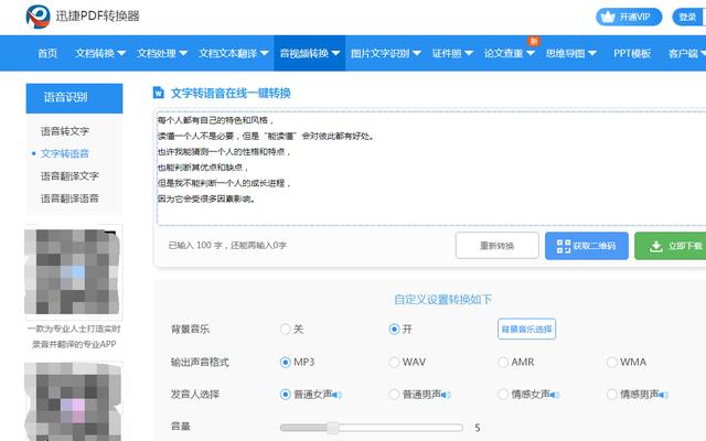 以上就是简单的把文字转语音的具体操作了,感兴趣的朋友可以打开迅捷PDF转换器在线网站,自己动手尝试操作。相信我的推荐,它能帮助我们提高工作效率哦。