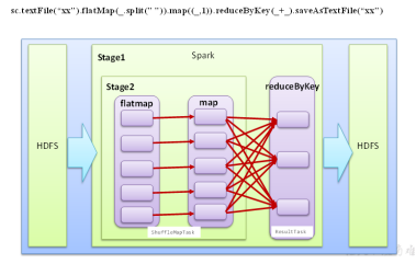 RDD任务切分中间分为:Application、Job、Stage和Task。Application->Job->Stage-> Task每一层都是1对n的关系。