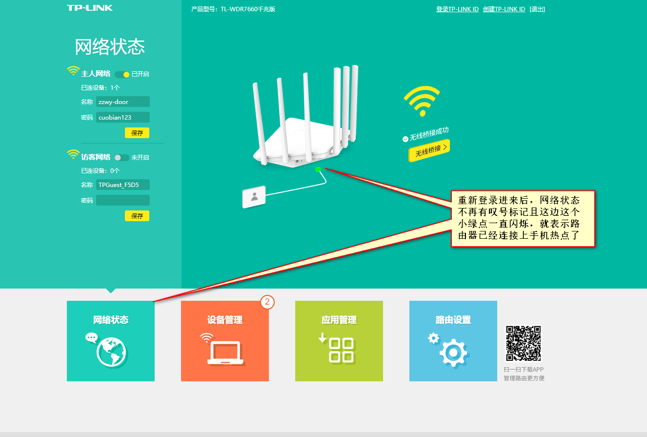 - 看到如下界面就标志着,路由器连接手机热点成功了