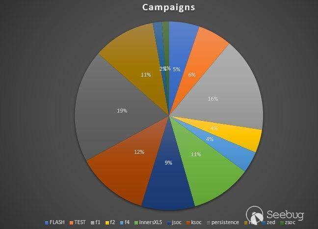 我们观察到12个不同的广告系列名称。下图显示了竞选活动的受害者人数百分比。