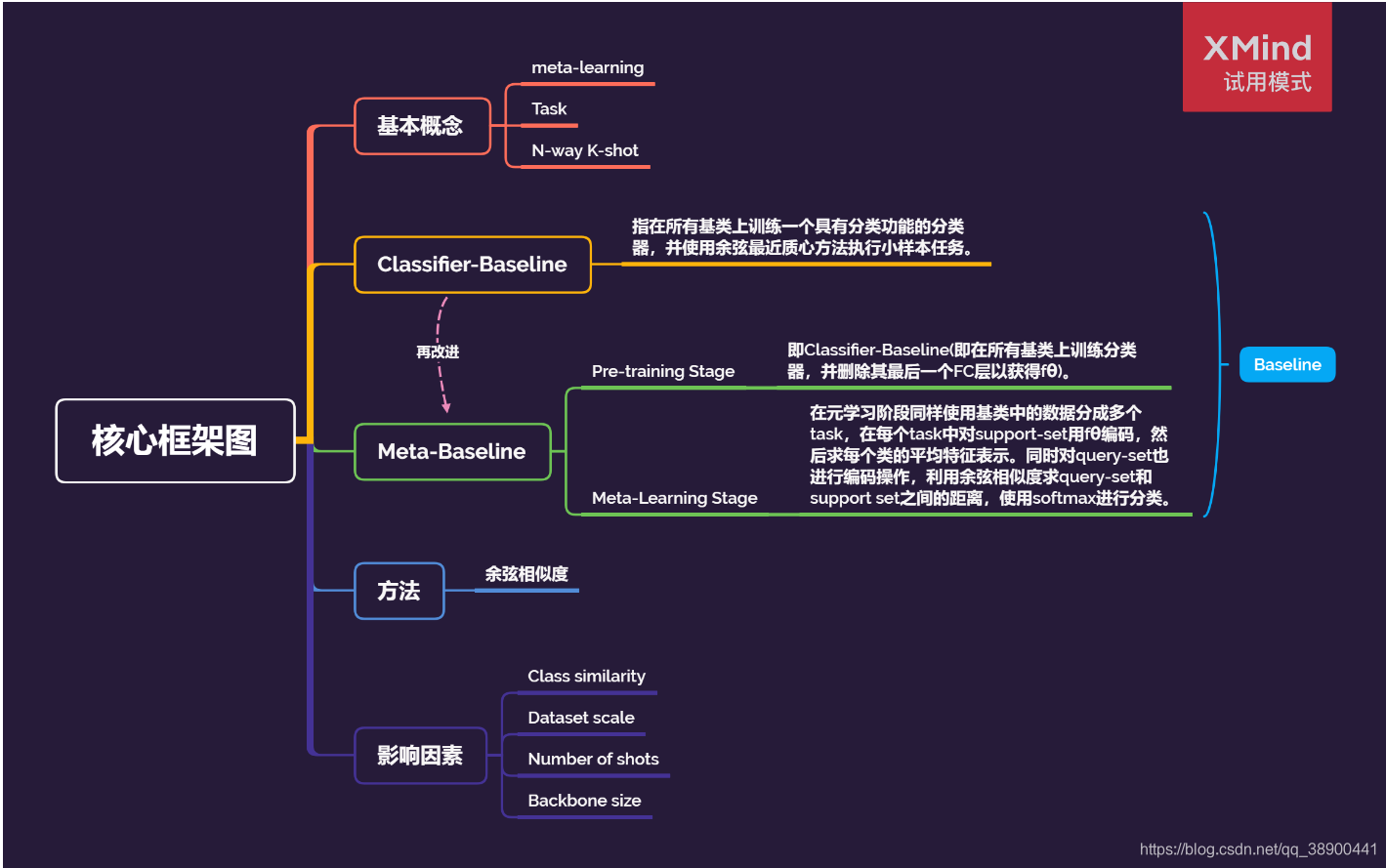 后来作者提出用元学习改善分类器-基线,于是提出Meta-Beaseline。 在Meta-Baseline中,我们使用预先训练的分类器-基线初始化模型,并使用余弦最近轮廓度量执行元学习,这是Clssififier-Baseline中的评估度量 。(一种基于度量的元学习)