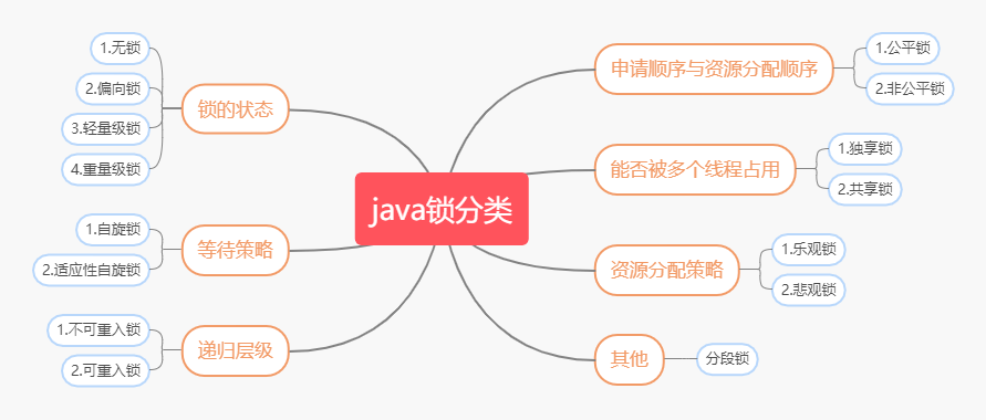 在我们的开发工作中,需要利用多线程处理高并发的情况,那么我们就不可避免的需要用到锁机制。分类总览图如下: