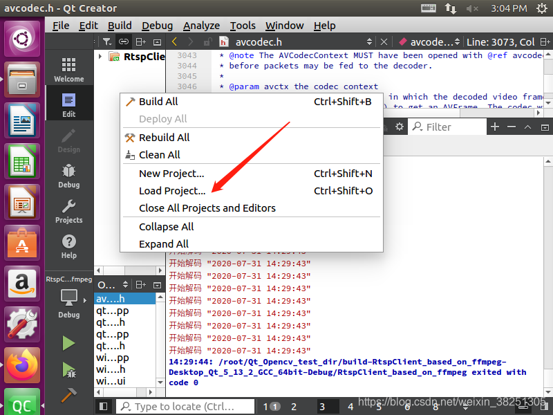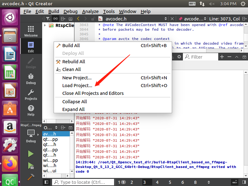 然后在用QT直接加载该项目程序,就可以运行了。步骤效果如下: