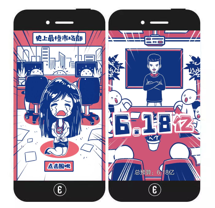 内容特色:该视频类H5明为展现京东叮咚市场部员工从天堂到地狱的悲惨心路历程,实际上则是为了突出“京东叮咚mini2直线降价,618总补贴6.18亿”这一核心信息。作品播放顺畅且趣味性强,易引起用户好感。