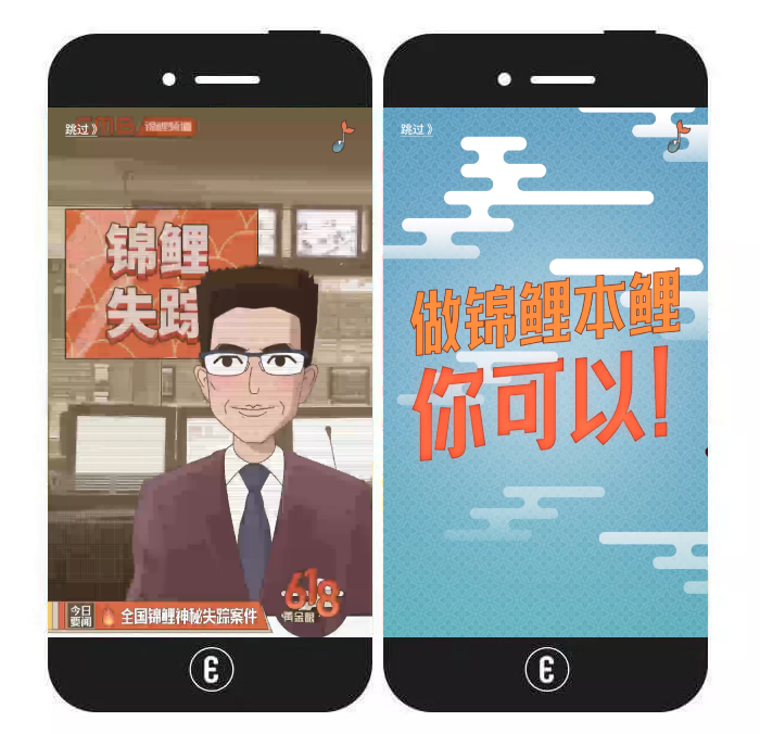 内容特色:该视频类H5旨在宣传掌上生活锦鲤节,视频主要包含两部分内容:①以新闻播报的方式阐述全球锦鲤神秘消失的情况,引起用户好奇心;②揭秘锦鲤全都来到了“掌上生活锦鲤节”,继而全面展示具体的活动内容。视频结束后,用户还可通过“成为锦鲤”按钮跳转至“掌上生活锦鲤节”专题页。