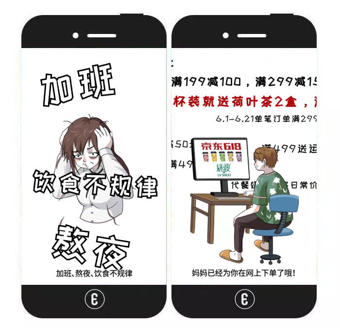 内容特色:该视频类H5主要以都市白领艰难的减肥塑身之路作为故事的主线,并将其与母亲之间的互怼日常作为切入点,既顺理成章地进行了产品植入及活动宣传,又自带戏精成分,不易引起反感。视频结束后,用户还可根据提示按钮跳转至品牌店铺、将作品分享出去或重看一遍。