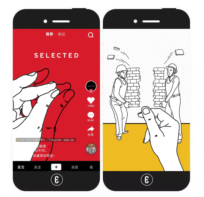 内容特色:该视频类H5以“打响指”这个动作贯穿始终,循序渐进地突出SELECTED特卖活动的力度之大。视频结束后,用户可点击“特卖现场”按钮跳转至SELECTED手机官网。