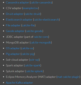 这里需要提到一个重要的概念:Schema adapters(https://calcite.apache.org/docs/adapter.html)