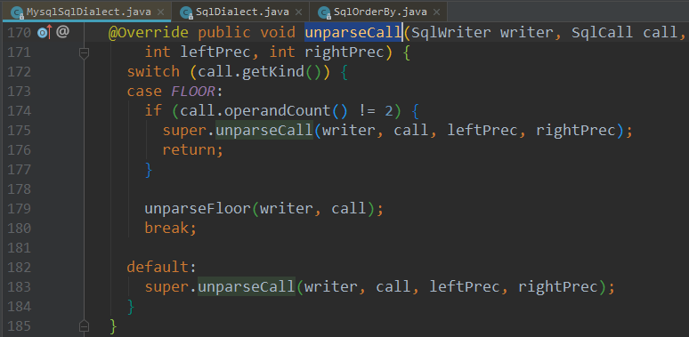 注意继承SqlDialect接口的时候,实现unparseCall方法最为重要,Default也需要根据对应方言类型的要求进行构造