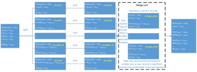 4. Maintain a list of k elements (k is the number of chunks) into which a row of data in each temporary file is put;