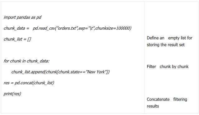 pandas supports data retrieval chunk by chunk. Below is the workflow diagram: