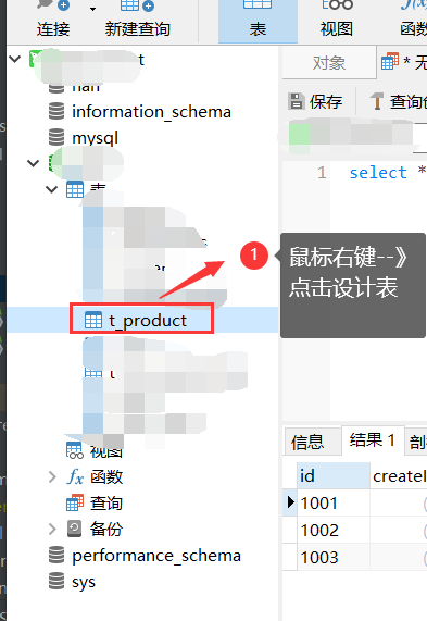 第二步:打开Navicat Premium,对需要操作的表点击设计表