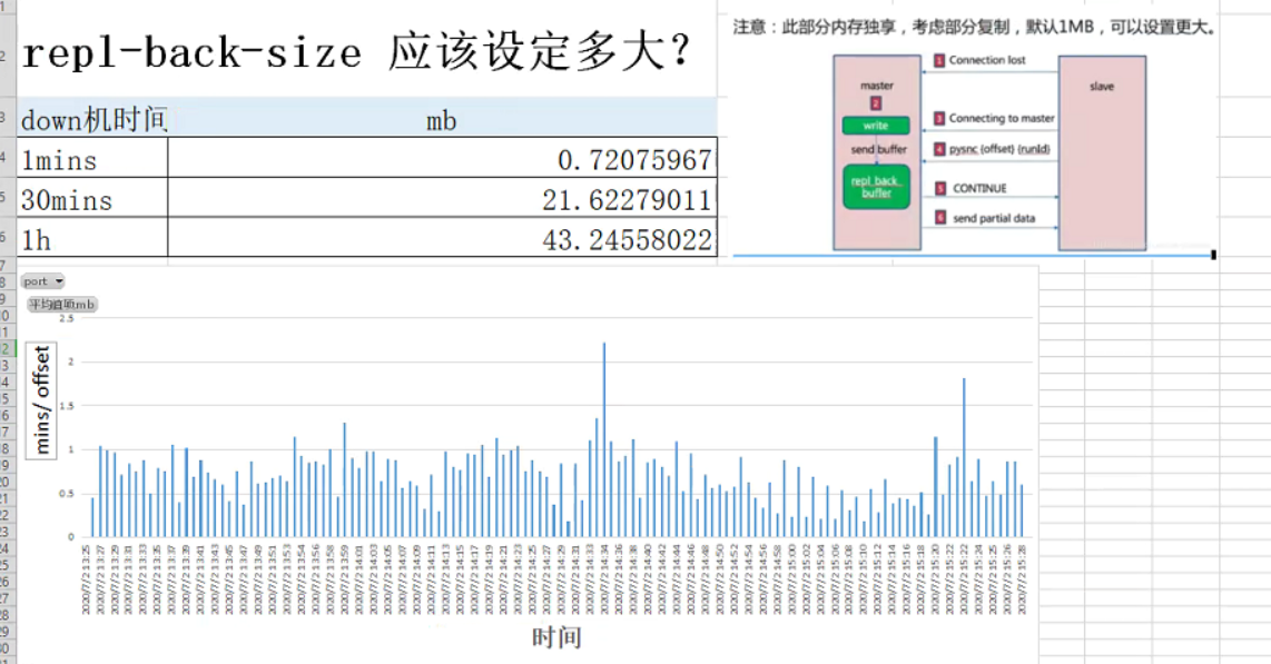 借助redis-cli 、info replication..收集master_repl_offset每一分钟前后的数据,其中使用了sed 和awk命令对数据进行处理,为后期分析提供便利。