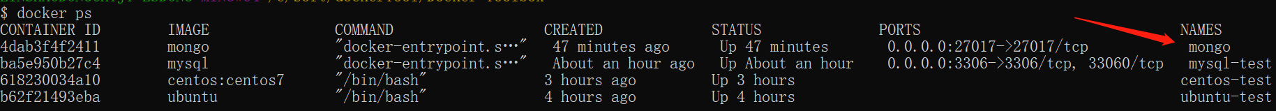 最后我们可以通过 docker ps 命令查看容器的运行信息: