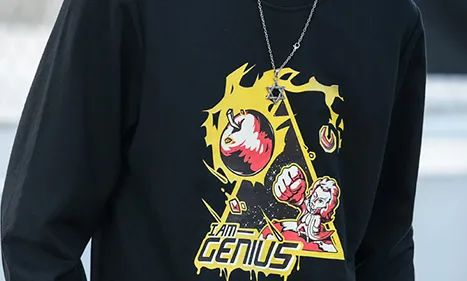 因为他们可以把自己喜欢的漫画和游戏角色形象印在衣服上,穿出去后,远远看到地就能知道对方是同道中人。