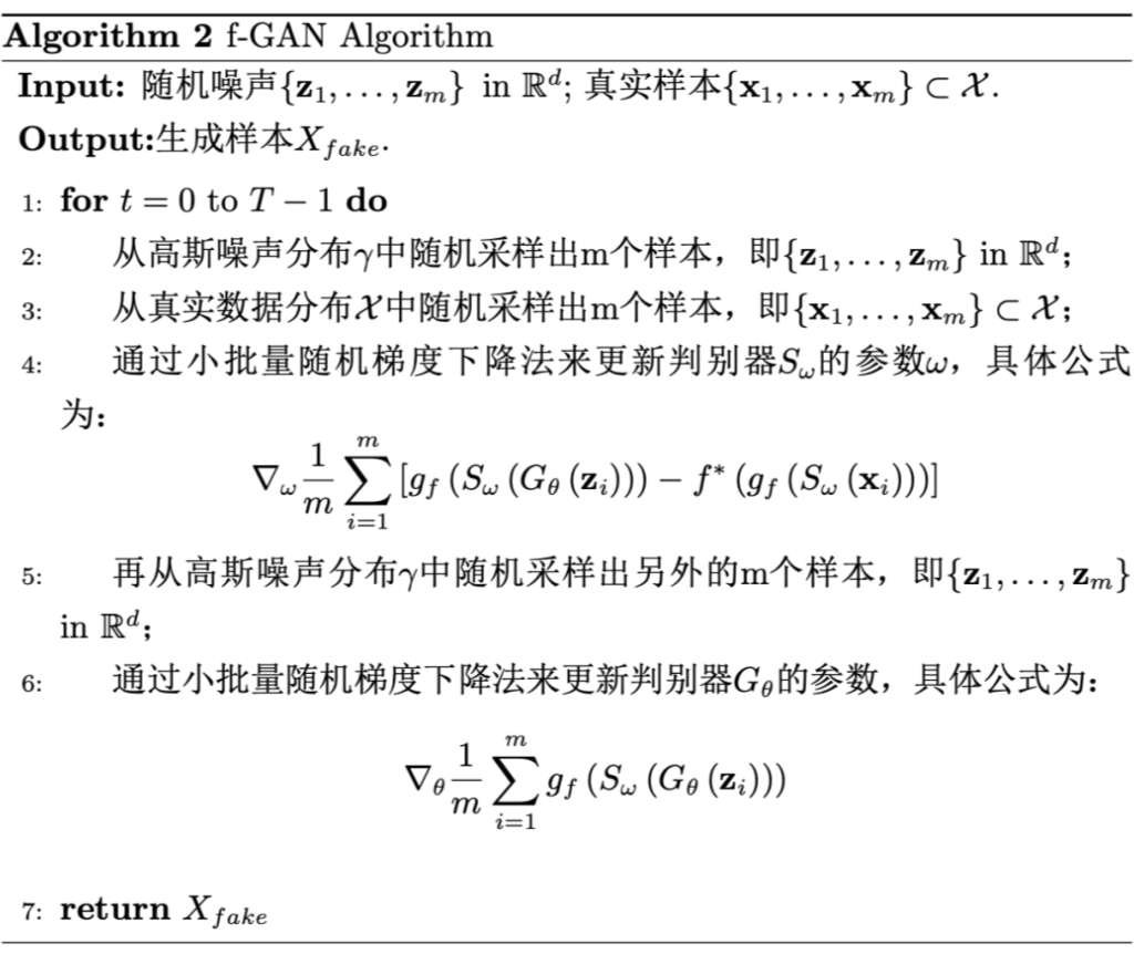 综上命题和定理可以将其归纳为如下的 GAN 算法框架,为了表达清晰,重新整理了一下该算法框架。