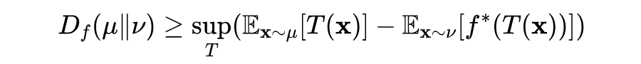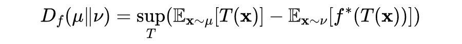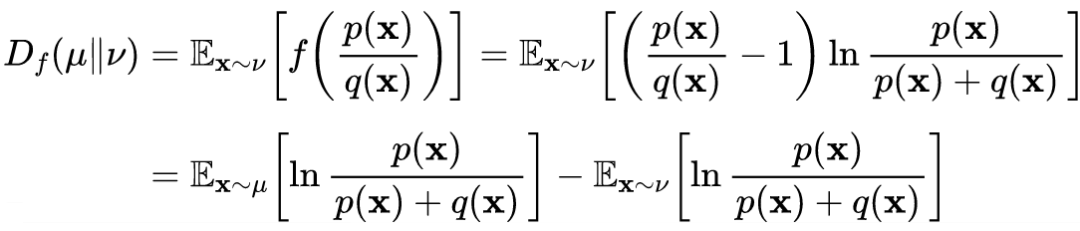 当函数 ,这里的f-散度就是为我们熟知的 KL 散度。则它的共轭函数为 ,其中 ,其相应的目标函数为: