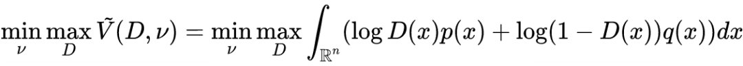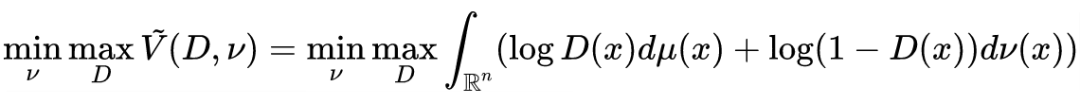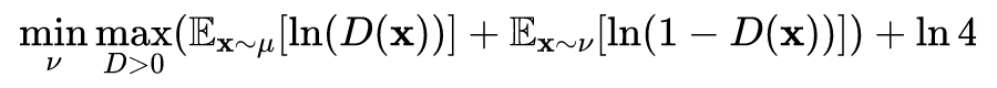 其中 ,忽略掉常数 +1 的常数项,并且 ,然后会有我们最原始的那种 GAN 的形式: