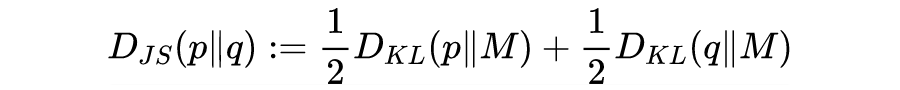 和 JS 散度公式如下(JS 散度是改进了 KL 散度的距离不对称性):
