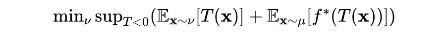 可以将如上的优化问题称为变分散度最小化(VDM)。注意 VDM 看起来类似于 GAN 中的极大极小值问题,其中 Borel 函数 被称为评判函数。