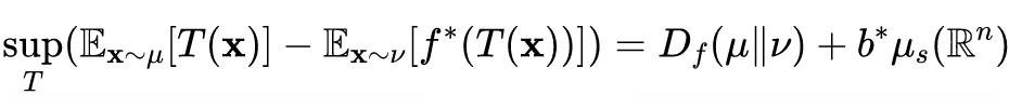 该函数的共轭函数为 ,域 。当 不是严格凸的连续可微时,相应的 f-GAN 目标函数如下所示: