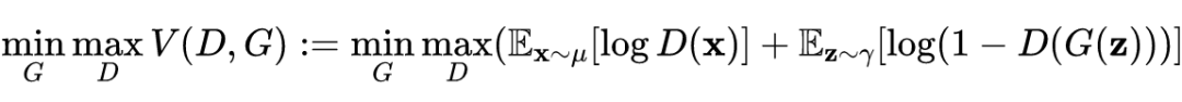 GAN的对抗博弈可以通过判别函数 和生成函数 之间的目标函数的极大极小值来进行数学化的表示。生成器 将随机样本 分布 转化为生成样本 。判别器 试图将它们与来自分布 的训练样本区分开来,而 试图使生成的样本在分布上与训练样本相似。对抗的目标损失函数如下所示为: