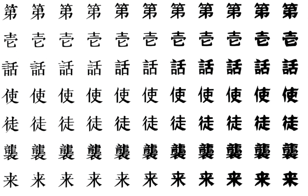 中文字符,不论简体还是繁体,或者日本文,都用相同的原理构建并有着一系列相同的根基,其中具体的实现结果如下图所示: