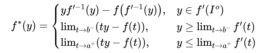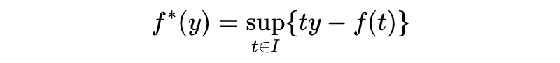 凸函数 的凸共轭也被称为 的 Fenchel 变换或 Fenchel-Legendre 变换,它是著名的 Legendre 变换的推广。设 是定义在区间 上的凸函数,则其凸共轭 定义为: