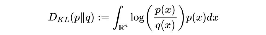 GAN 的核心本质是通过对抗训练将随机噪声的分布拉近到真实的数据分布,那么就需要一个度量概率分布的指标—散度。我们熟知的散度有 KL 散度公式如下(KL 散度有一个缺点就是距离不对称性,所以说它不是传统真正意义上的距离度量方法)。