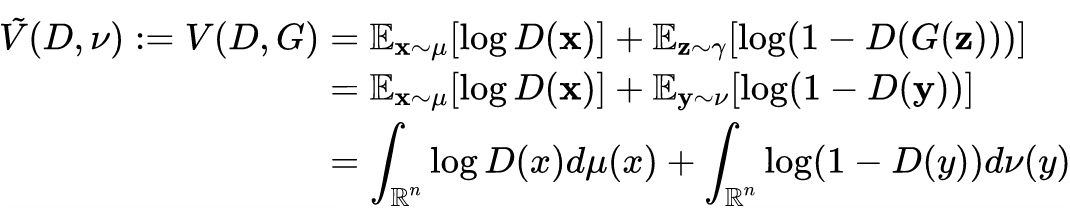 GAN 的原论文中的证明会有一些不严谨的地方,并且在算法中为了训练效率更高,也有很多简化,其实这也是这个领域的一个常见现象,在北大的深度学习的数学原理的暑期课上,老师就提到过深度学习中数学严谨证明占 6 成。