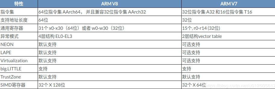 - ARM公司 在看到移动设备对64位计算的需求后,于2011年发布了ARMv8架构(64位),也叫 也叫arm64,而 ARMv7是32位的ARM构架 。"64位“指ARMv8架构具备64位计算能力。