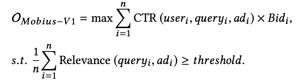 莫比乌斯是一个项目名称,这个项目就是专门用来解决上述问题的,解决的方法自然是在Matching层就考虑到广告点击率相关的目标。即: