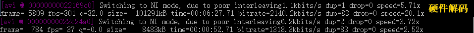 硬件NVIDIA:ffmpeg.exe -i input.avi -c:v hevc_nvenc -preset:v fast output.mp4